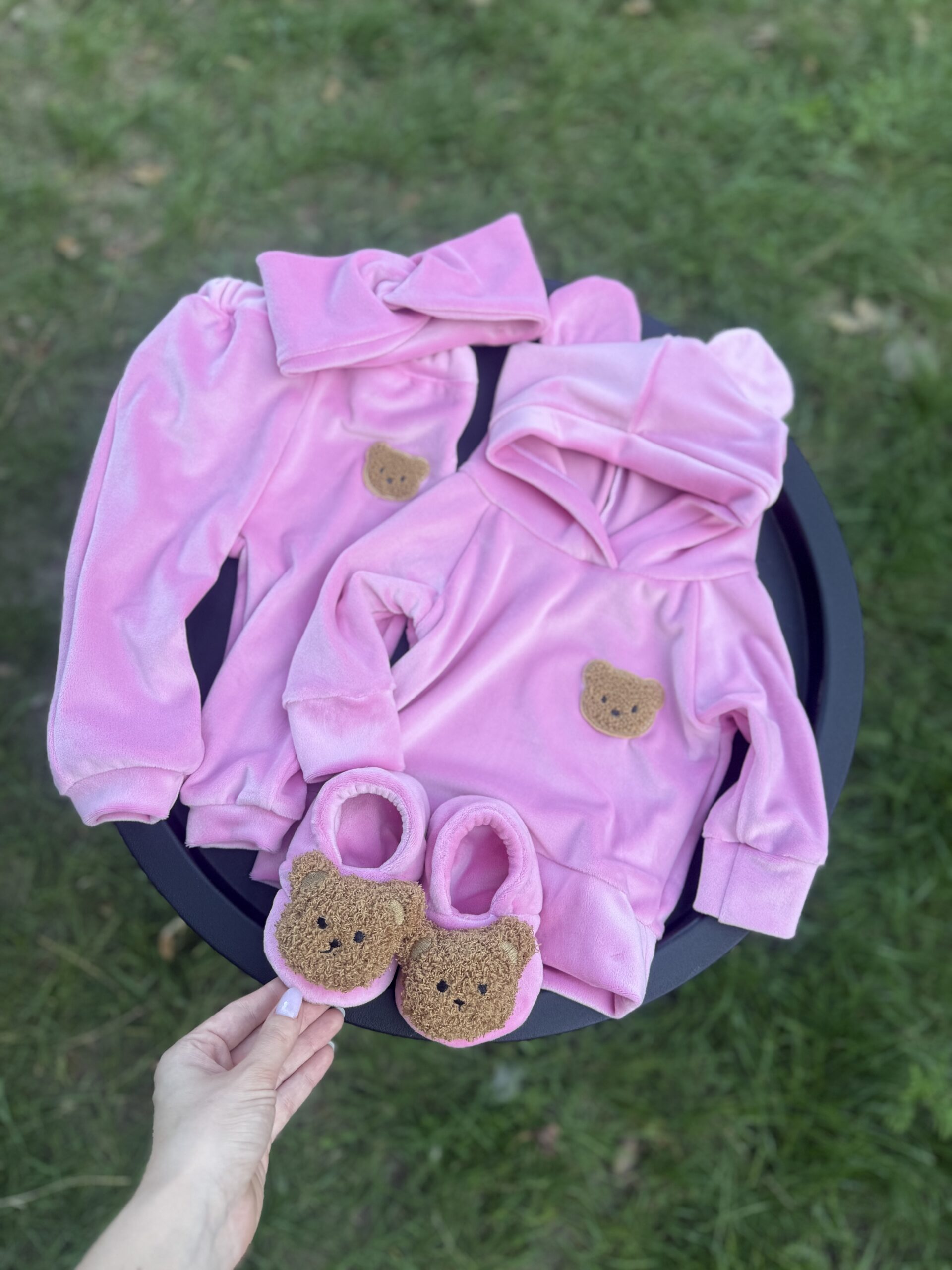 Будьте першим, хто залишив відгук “92 костюм оксамит рожевий з ведмедиком”“