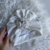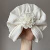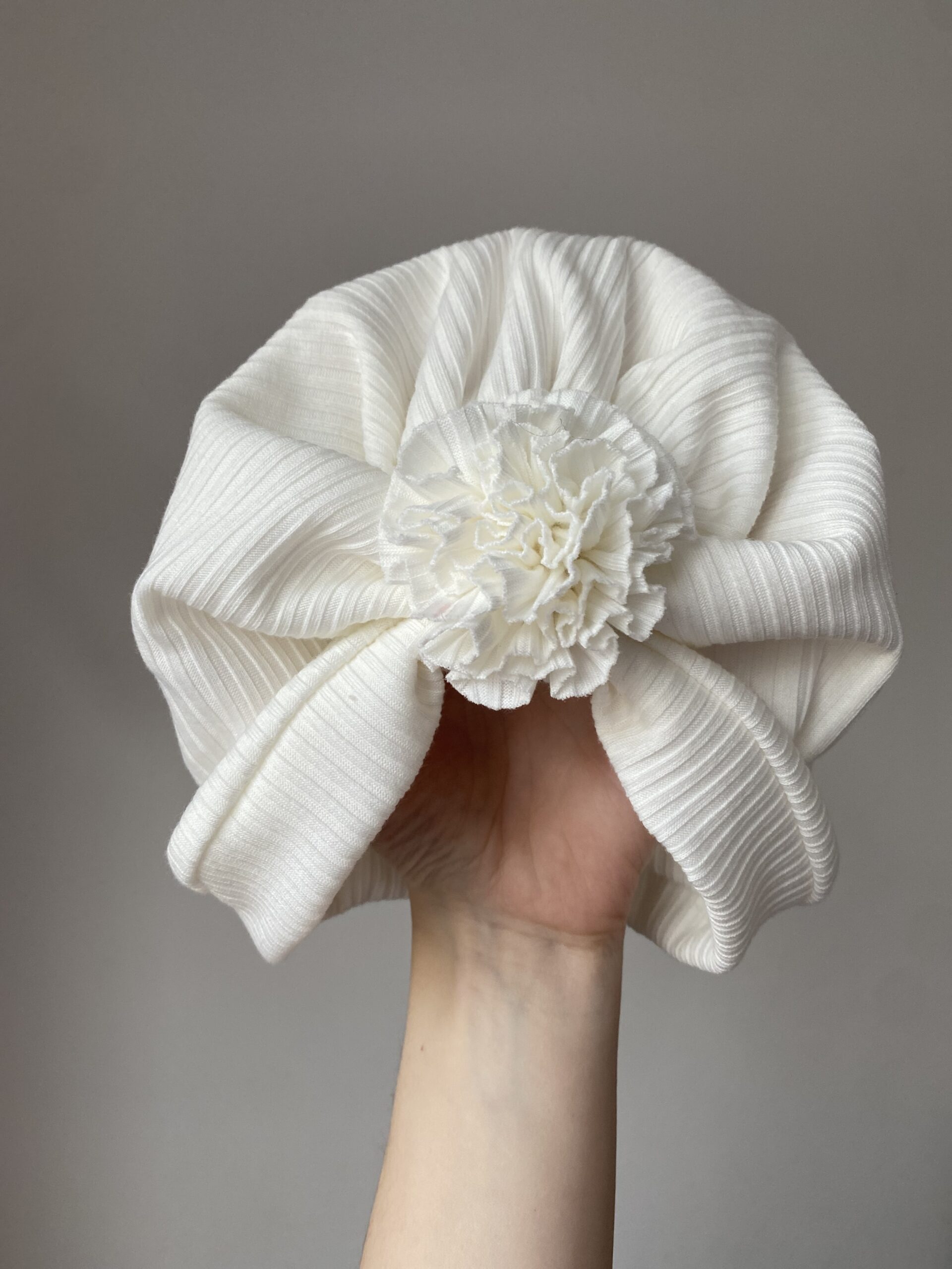 Чалма з квіточкою одношарова молочна в широкий рубчик