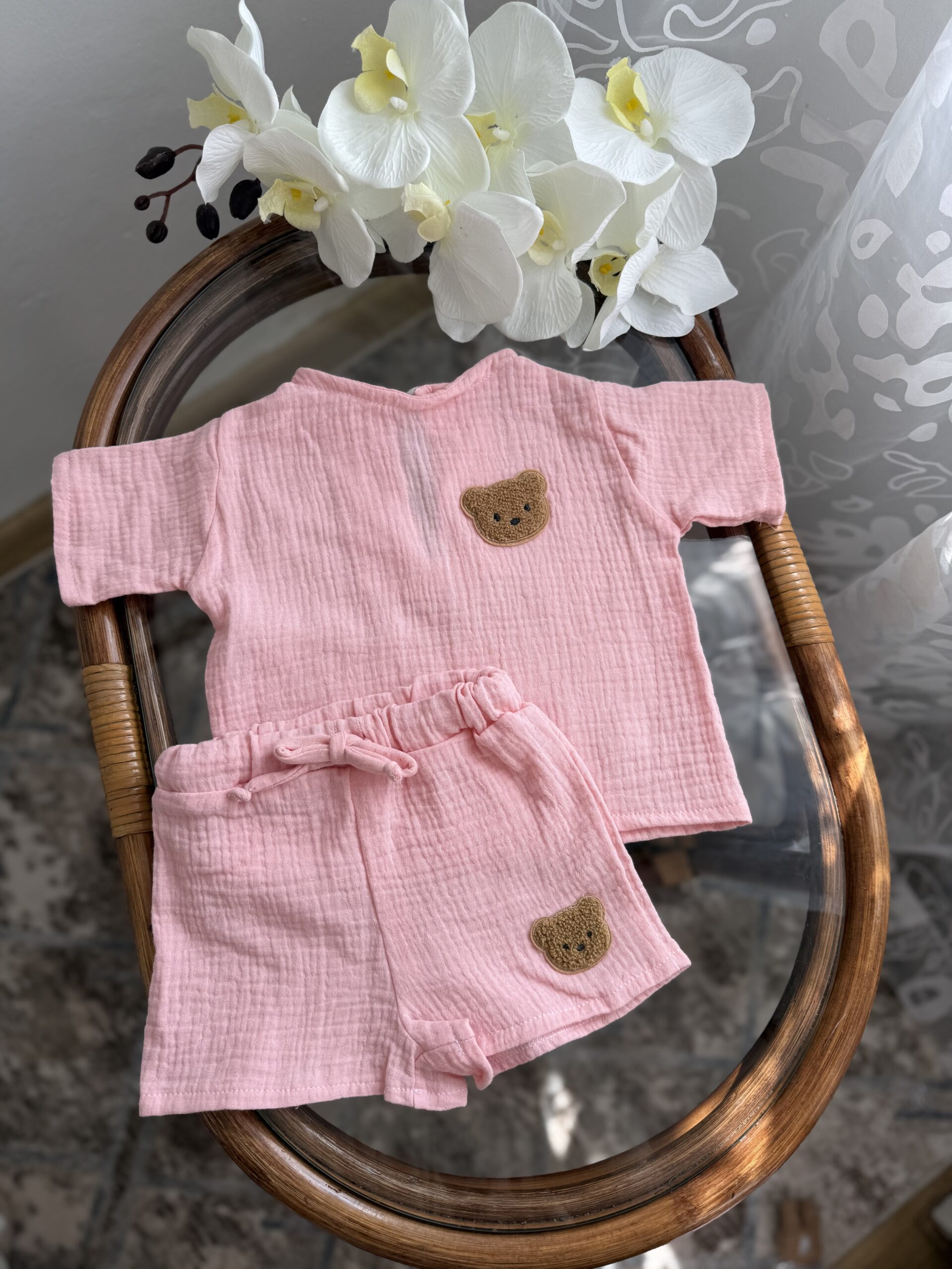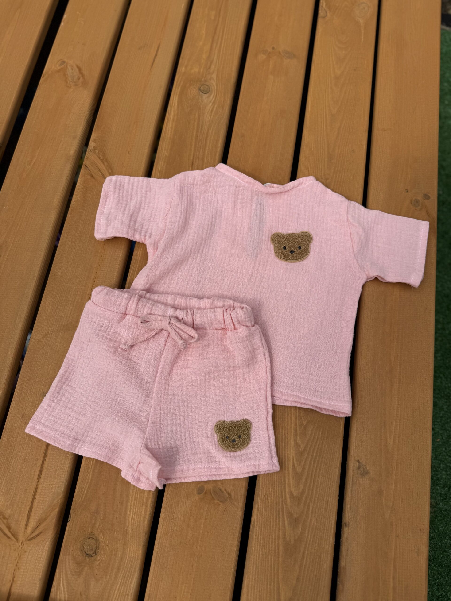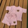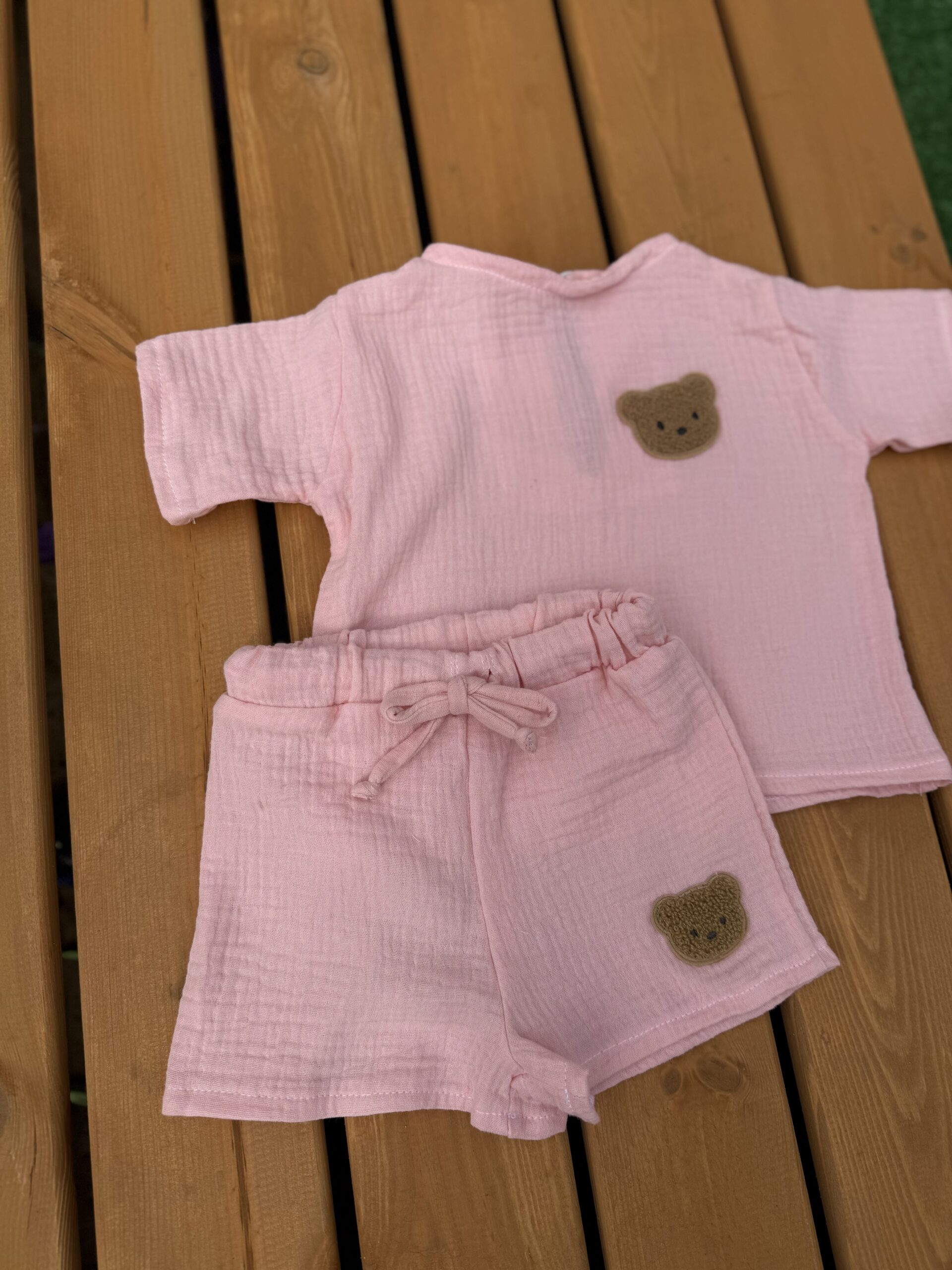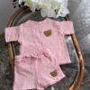 Легкий та ніжний комплект для малюків, який ідеально підійде для теплої погоди. Костюм виконаний із м’якого мусліну — тканини, що добре пропускає повітря та не подразнює чутливу дитячу шкіру.