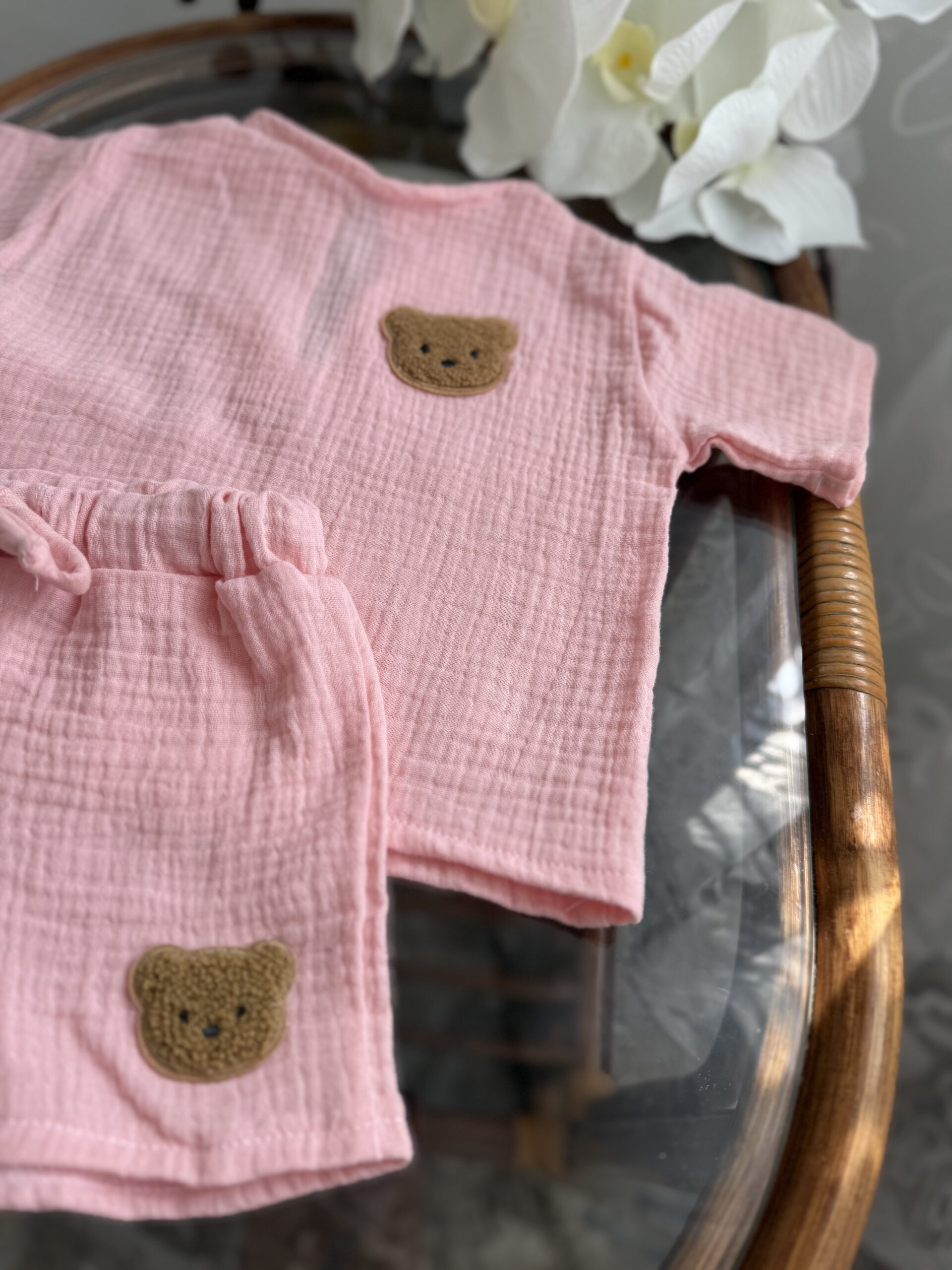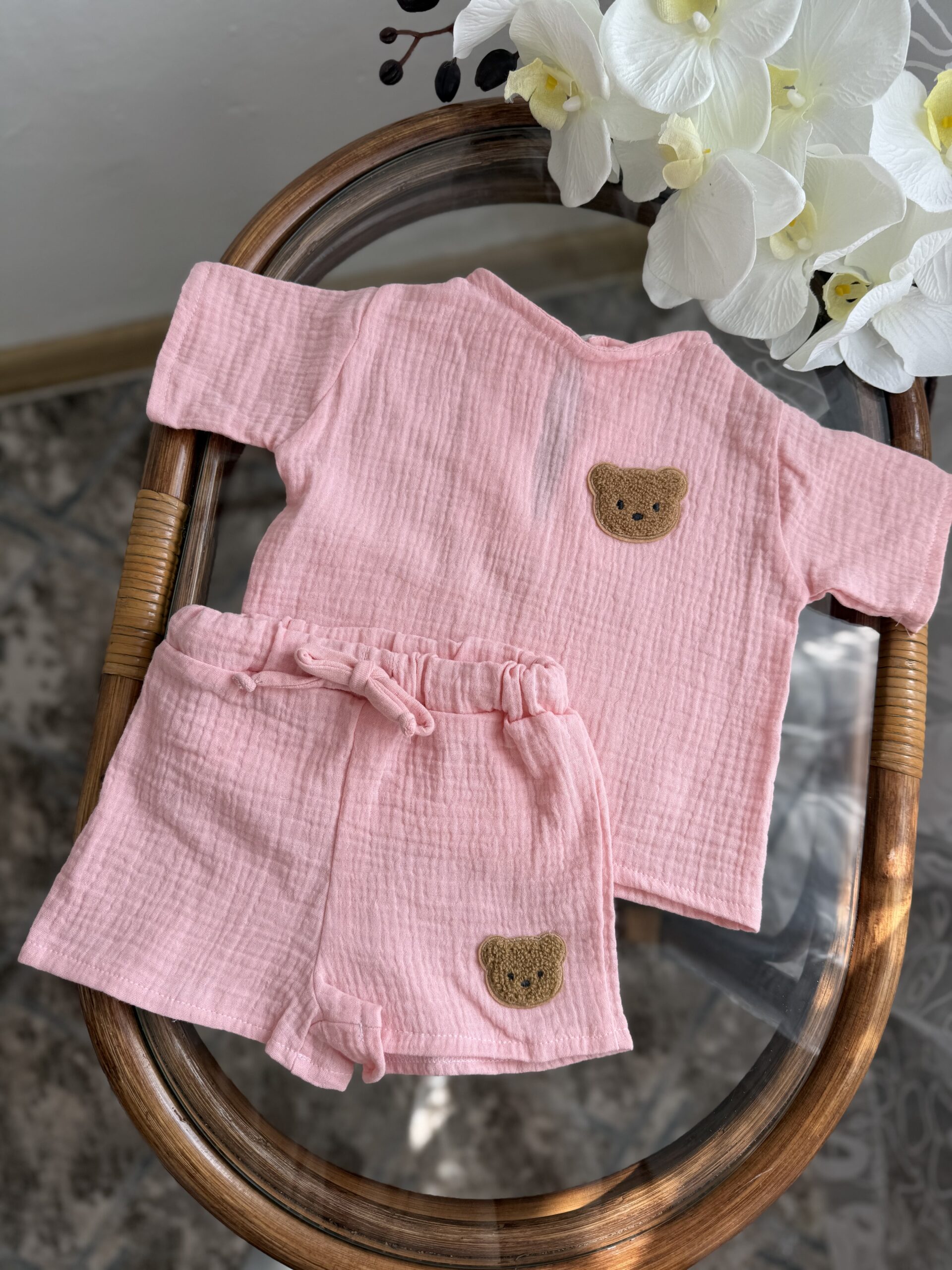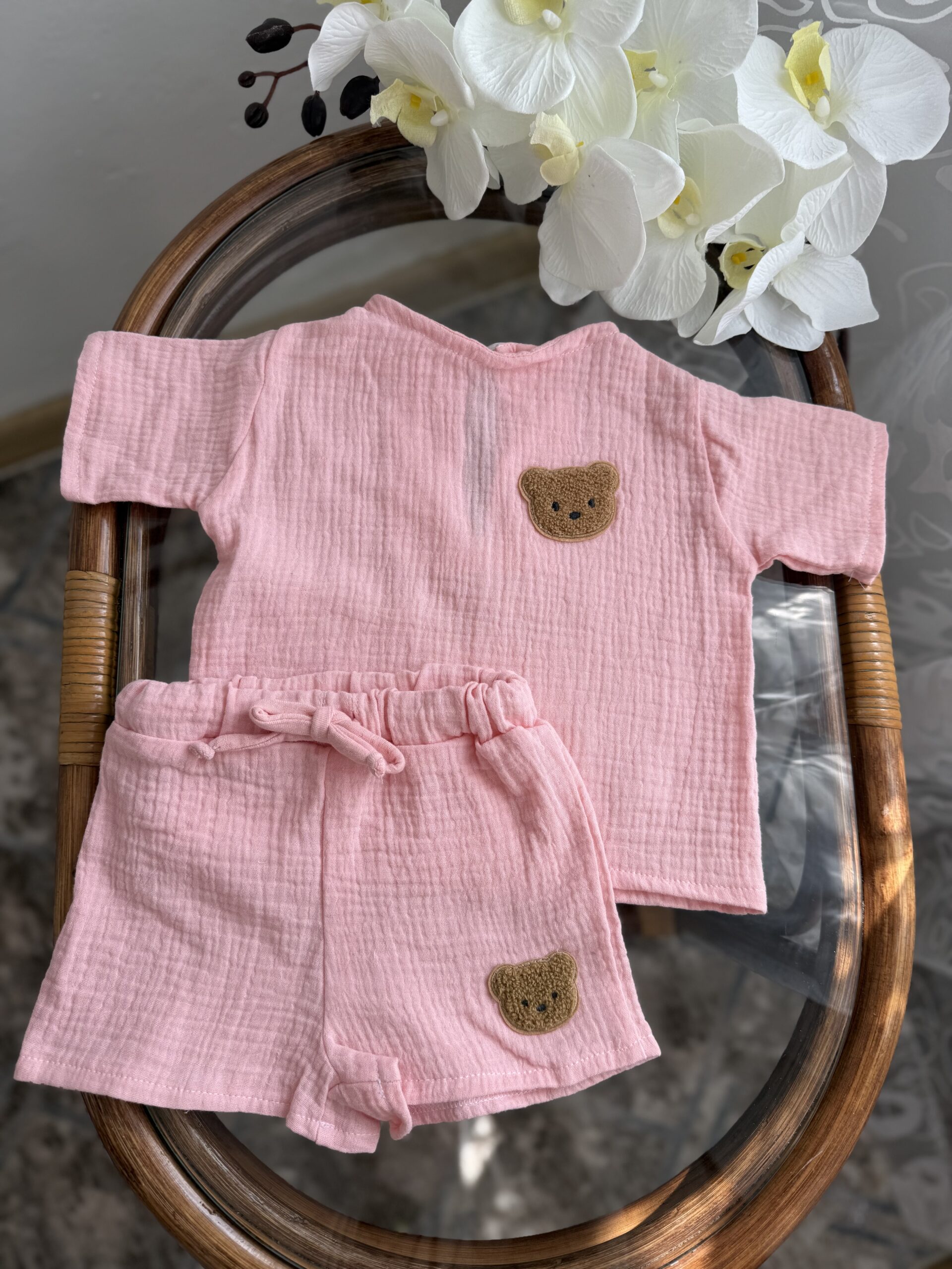 Легкий та ніжний комплект для малюків, який ідеально підійде для теплої погоди. Костюм виконаний із м’якого мусліну — тканини, що добре пропускає повітря та не подразнює чутливу дитячу шкіру.