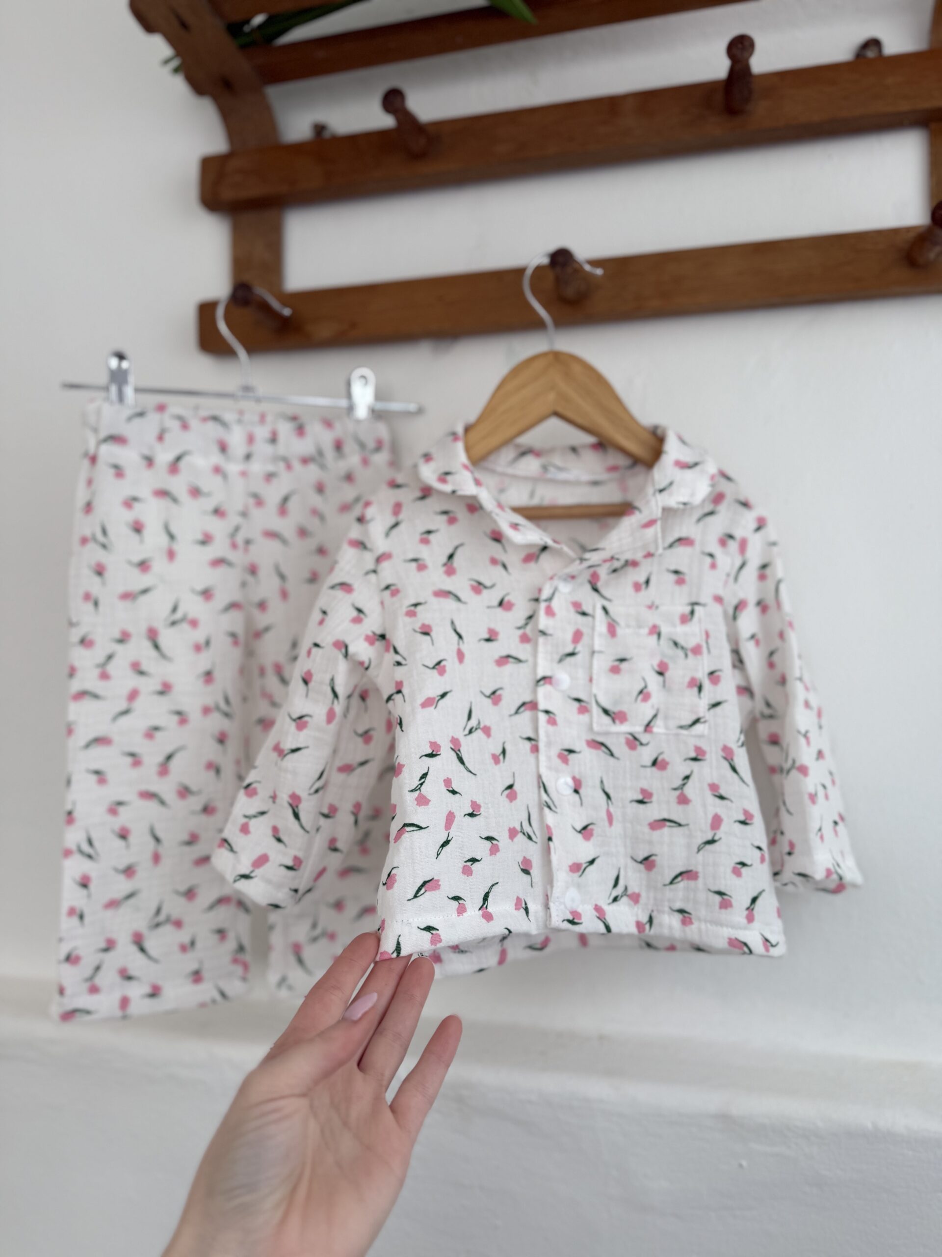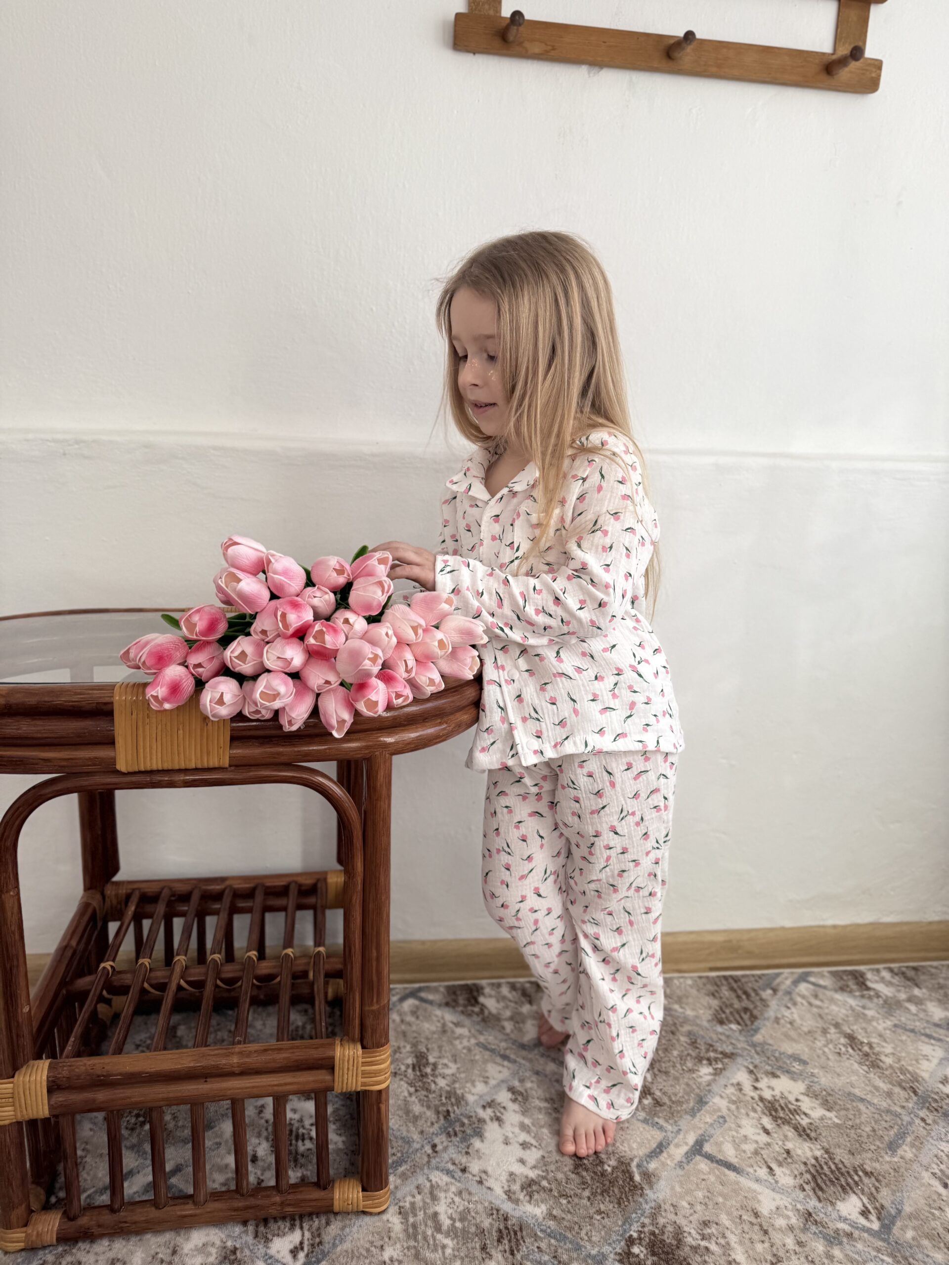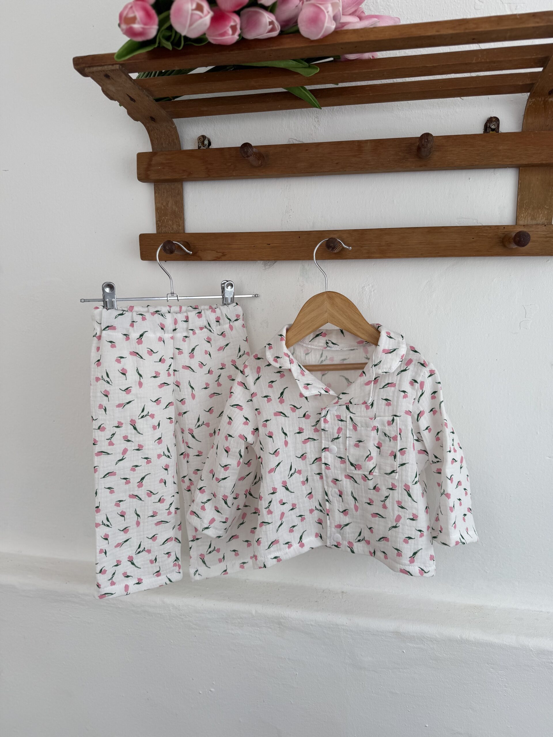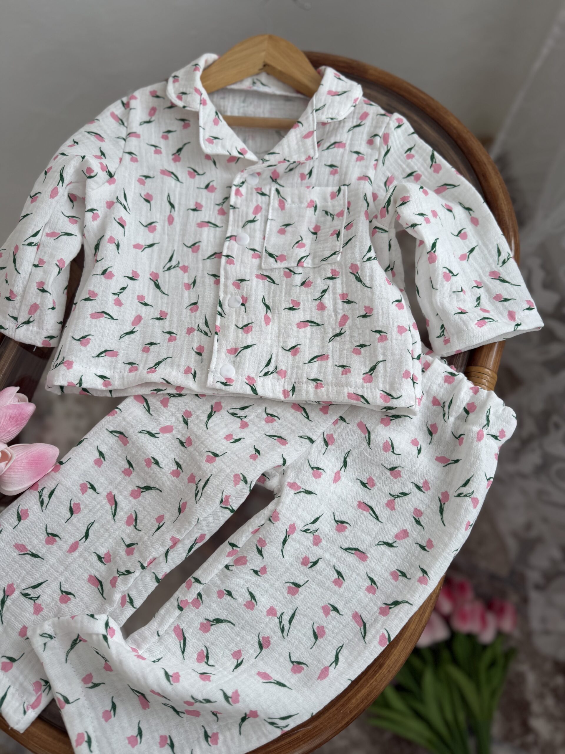 дитяча піжама з тюльпанами, муслінова піжама для дівчинки, квіткова дитяча піжама, літня піжама для дітей, натуральна бавовняна піжама, піжама для садочка, комплект для сну дитячий, український дитячий одяг