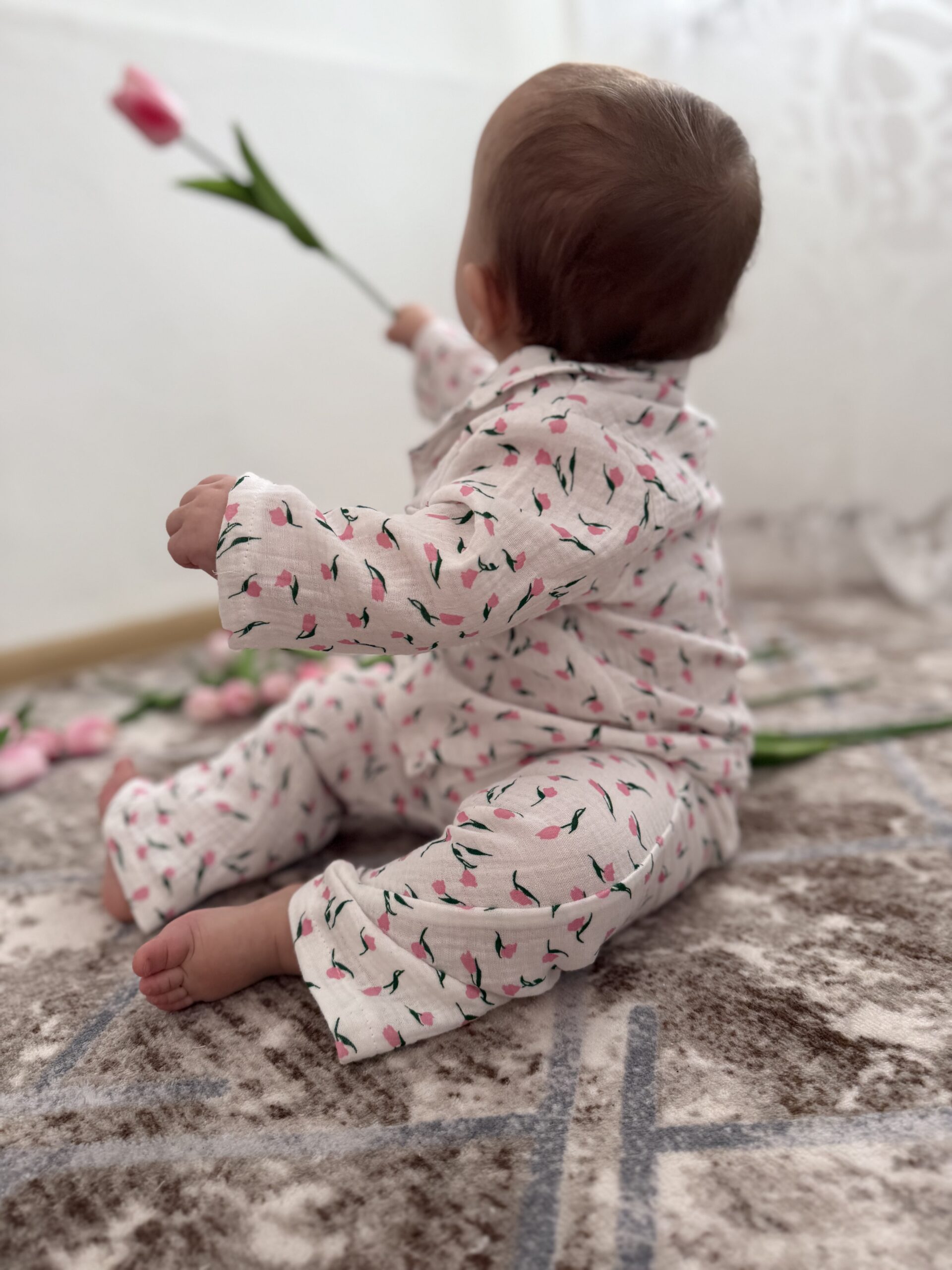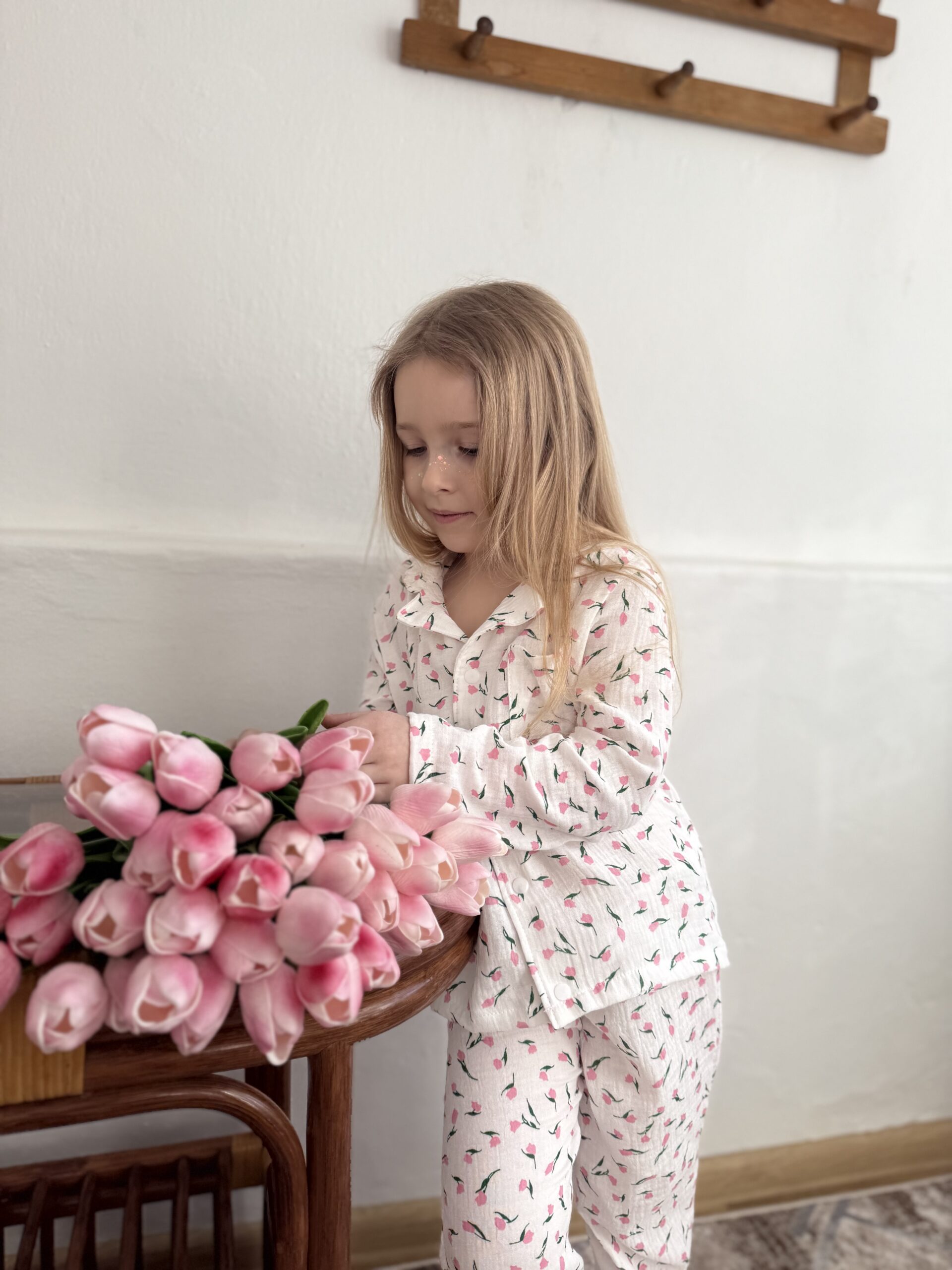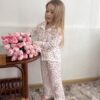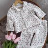 Принт із маленькими тюльпанами додає образу ніжності та весняного настрою 🌷 Піжамка виглядає святково, але водночас дуже натурально — ідеально для дому, садочка або фотосесії.