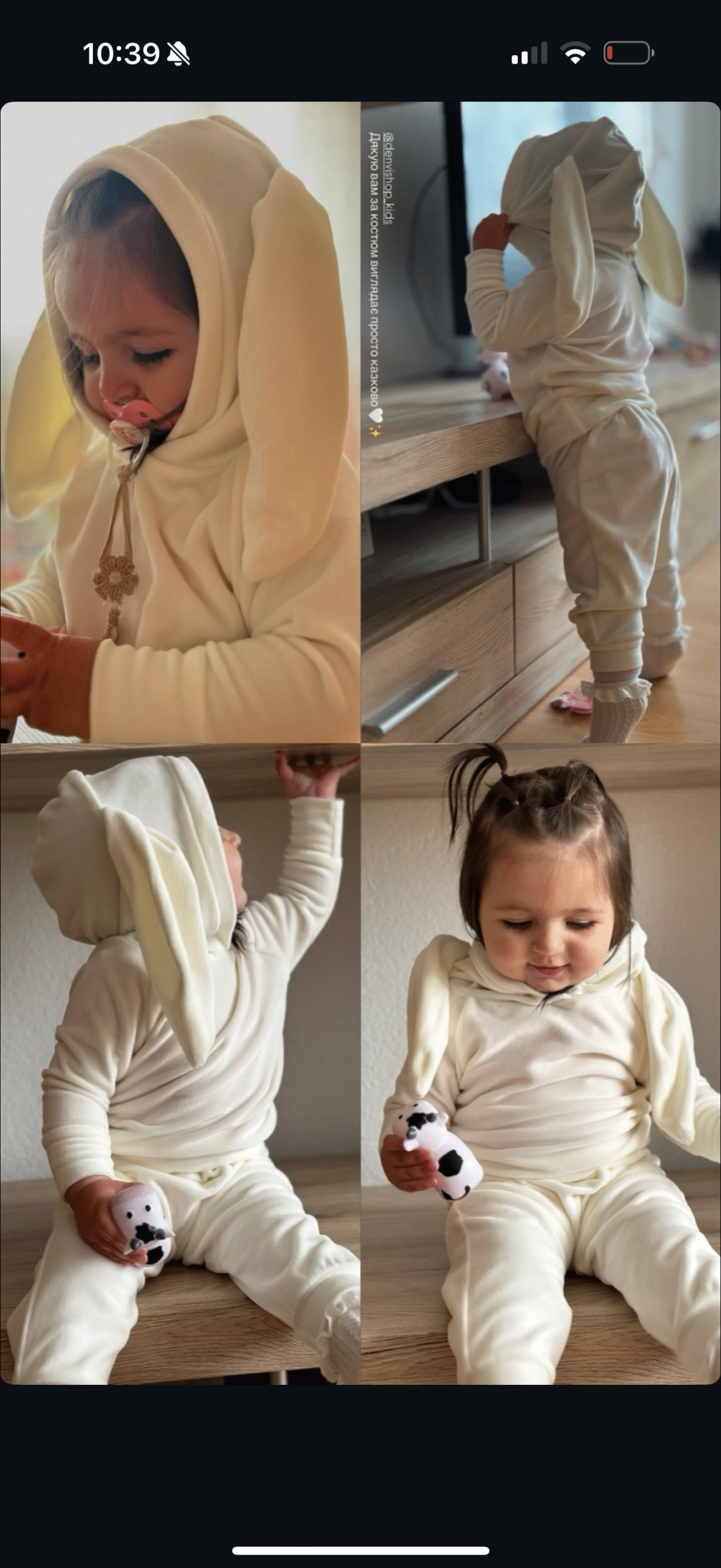Особливу чарівність додають вушка зайчика на капюшоні — саме та деталь, яка робить образ по-справжньому казковим і викликає усмішку з першого погляду