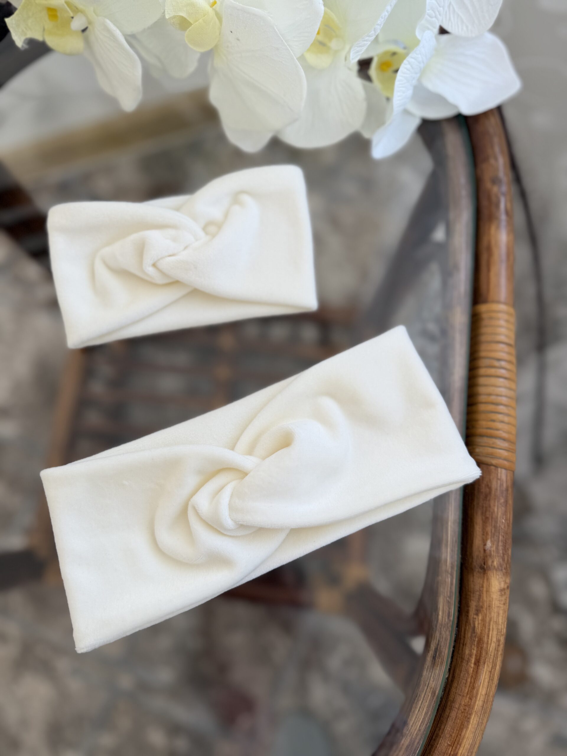 Ці пов’язочки виготовлені з м’якого оксамитового матеріалу, який приємно прилягає до голови, не тисне та не викликає дискомфорту навіть при тривалому носінні. Стильний дизайн у вигляді переплетення виглядає акуратно та сучасно, додаючи образу особливої ніжності.